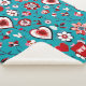 Cette couverture est décorée d'un charmant et dynamique motif avec un arrière - plan turquoise, agrémenté d'un éventail de motifs floraux et d'accents cardiaques en rouge, blanc et rose. Les fleurs audacieuses et les coeurs fantaisistes créent une esthétique ludique et romantique. Une section monogramme dans le coin inférieur est personnalisable avec vos initiales choisies, ajoutant une touche personnelle à cette pièce confortable et élégante. Parfait comme un cadeau ou un objet de déco!