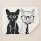Caractéristiques de conception ce qu'un chat femelle noir s'est habillées en collier de perle et le chat masculin blanc s'est habillé dans la cravate pointillée.