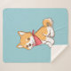 Couverture Sherpa Cute Puppy Dog Shiba Inu on Blue