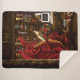 Dragon rouge assis dans sa tanière d'ordinateur lisant un livre. Derrière, il y a du matériel de baladodiffusion et un ordinateur sur son bureau.