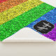 Personnalisez le décor de maison à couverture brillante avec votre nom et votre initiale. Un drapeau LGBT scintillant dans une parties scintillant vibrante rouge, orange, jaune, vert, bleu et violet brille. *photo de scintilles pas de parties scintillant réelle!