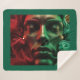 Divine Essence" rayonne de force et de sérénité avec un visage métallique baigné de tons rouge, vert et or. Entouré de fumée qui coule, il symbolise la fierté culturelle, la résilience et la beauté intemporelle