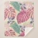 Couverture Sherpa Feuilles tropicaux roses et verts, fleurs bleues.