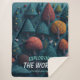 Faites votre propre couverture de camping - Imaginaire fils animaux de forêt, cerf, champignon, oiseaux et arbres, magie de la forêt foncée, couleurs d'automne, éditable couverture Sherpa