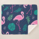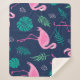 Couverture Sherpa flamants roses, palmiers tropicaux, couteaux dessi