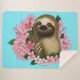 Un mignon paresseux assis au milieu de fleurs roses sur un fond bleu