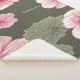 Couverture Sherpa Fleurs roses sur arrière - plan vert