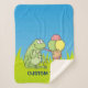Une grenouille souriante vole un cône de glace avec sa langue. Texte personnalisé.