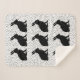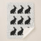 Cette couverture en toison Sherpa a un groupe de lapins assis en silhouette noire sur un arrière - plan blanc avec de petits pois noirs.