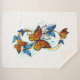 Symbol infinity made of gold, decorated with realistic orange and blue on a white background. Butterfly morpho and Monarch. Design with butterflies.