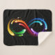 Symbol of infinity is artistically painted with fast moving, bright, luminous, rainbow colored comets with long flexible tails on black background. Rainbow infinity.