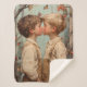 Une scène pleine de chaleur et de tendresse montrant deux jeunes garçons partageant un baiser innocent au milieu d'une toile de fond de branches chargées de pommes et de papillons flottants. Capturée dans un style qui rappelle Norman Rockwell et J.C. Leyendecker, cette oeuvre d'art dégage charme et nostalgie, célébrant la pureté et la beauté de l'enfance.