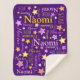 Mignonne nom de texte conçu à l'origine couverture personnalisée. Cette couverture typographique de texte violet, rose, blanc et jaune clair avec des étoiles graphiques peut également être customisée avec votre propre nom court, dit actuellement Naomi. D'autres noms sont disponibles ou contactez-moi pour des demandes de nom. Art et design originaux par Sarah Trett pour www.mylittleeden.com