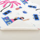 Couverture Sherpa Joyeux DJ, motif de plage tropical.