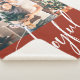 Cette couverture sherpa de Noël élégante dit "Joyeux" dans la calligraphie de script moderne. Ajoutez votre photo de famille préférée et votre nom. La partie inférieure du design est une couleur rouge festive.