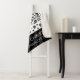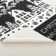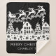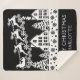 Joyeux Noël Père Noël Winter Snowflakes Nom personnalisé Sherpa Blanket met en vedette le Père Noël avec son renne volant au-dessus de maisons recouvertes de neige avec le texte "Joyeux Noël" dans le script de calligraphie moderne et votre nom personnalisé ci-dessous en blanc sur un arrière - plan noir. Personnalisez en modifiant le texte dans les zones de texte fournies. Parfait pour les cadeaux de Noël. Conçu par ©Evco Holidays www.zazzle.com/store/evcoholidays