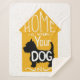 Carte de voeux d'affiche de typographie ou invitation tirée par la main d'impression avec la silhouette de maison et de chien. "À la maison est où votre chien est" citation de lettrage de main. | Bigstock® - tous droits réservés.