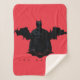 Illustration de Batman debout devant l'horizon de Gotham City en forme d'aile de chauve-souris.