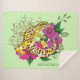 Un gecko léopard est installé au milieu de fleurs et de henné sur fond de vert