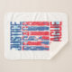 Ce graphique patriotique de la Ligue de la Justice est peint en bleu et en rouge, les membres de la Ligue ont posé en alternance des bandes de couleurs entre le logo du film de la Ligue de la Justice.
