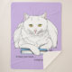 Un chat blanc assis sur un livre à la recherche d'attention sur un fond de violet