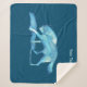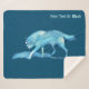 Un loup bleu stylisé (Canis lupus) projette une ombre en traversant un terrain enneigé. Ajoutez votre propre texte.