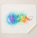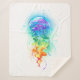 Grande méduse irisée, artistiquement dessinée, brillante, avec de longues tentacules sur le blanc, peinte sur l'arrière - plan multicolore. Méduse arc-en-ciel.