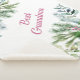 Best Grandma est écrit en rose sur une couverture Sherpa très douce et chaude. Des brindilles à feuillage persistant et des feuilles Holly et des baies en rose et rouge entourent l'écriture. Quel grand cadeau pour grand-mère !