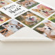 Célébrez votre meilleur ami avec une couverture photo collage mémorial personnalisée dans un élégant design de 11 photos. Cette couverture de mémorial pour chien contient 11 de vos photos préférées, et Citation : "Vous avez laissé des Empreintes de pattes pour toujours dans mon coeur." Cette couverture de collage photo pour animaux de compagnie est parfaite pour les mémoriaux pour chiens et les mémoriaux pour chats. Customisez avec 11 de vos photos d'animaux de compagnie préférées, nom personnalisé. Voir "personnaliser ce modèle" pour changer les photos et le nom. Il est préférable de recadrer vos photos centrées avant de les télécharger. Mémorial aux chiens pour toujours dans nos coeurs Photo Collage Sherpa Blanket