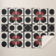 Une œuvre d'art contemporaine présentant une géométrie audacieuse avec des formes circulaires et carrées dans des tons contrastés rouge, noir et blanc, dégageant un sentiment de modernité et de design artistique.