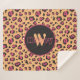 Couverture Sherpa Monogramme Empreinte de léopard rose noir