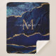 Couverture Sherpa Monogramme en marbre bleu marine Nom Sherpa Blanch