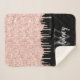 Élégante couverture sherpa à goutte de parties scintillant monogrammée - parties scintillant rose en couche goutte sur un arrière - plan noir avec un nom de script blanc personnalisable modèle et monogramme gras en gris.