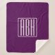 Couverture Sherpa Monogramme initial | Blanc Sur Violet Profond