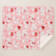 Mignonne Valentine's Day Bichon Frise chiens en pois rouges, roses et blancs, et des pulls de coeur avec des empreintes de pattes éparpillés et des flèches sur un arrière - plan rose.