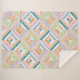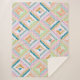 Cette couverture sherpa présente un design géométrique vibrant avec des teintes pastel colorées de rose, bleu, vert et jaune disposées dans un motif dynamique d'inspiration courtepointe. Idéal pour ajouter une touche contemporaine joyeuse à votre salon ou chambre, cette couverture fait également un cadeau réfléchi pour ceux qui apprécient les accessoires de maison colorés et uniques.