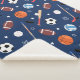 Ce motif d'équipement sportif amusant pour enfants a des balles de football, des balles de football, des balles de baseball, des balles de volley, des bâtons et des chaussettes de hockey, et des chauves-souris de baseball. L'équipement sportif a un arrière - plan de bleu foncé. Il fait un grand ajout à la chambre ou à la crèche d'un petit garçon ou d'une petite fille. Il fait aussi un joli anniversaire, Noël, ou tout autre cadeau de vacances.