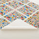Des motifs géométriques vibrants occupent tout l'espace, avec des cercles, des carrés et des lignes en mosaïque harmonieuse.