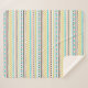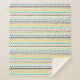 couverture Sherpa avec motif géométrique jaune or, bleu aqua, blanc, noir et rose pêche.
