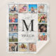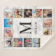 Créez votre propre couverture sherpa collage photo personnalisée 12 avec vos images personnalisées, monogramme et nom sur un élégant arrière - plan en marbre blanc élégant.