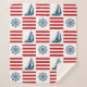 Design nautique avec voilier et décoration boussole sur arrière - plan rayé rouge et blanc