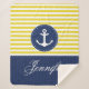 Conception de jaune et de bleu marine avec l'ancre. Cette belle couverture de sherpa a également le secteur personnalisable des textes. Écrivez là votre nom, ou nom d'ami, ou n'importe quel texte que vous voulez ! Ayez customiser d'amusement !