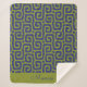 olive green and blue abstract pattern sherpa blanket monogram name,