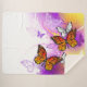Orange, papillons monarques détaillés sur la lumière, violet, pittoresque, arrière - plan peint.