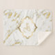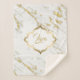 Élégant spotted gold glitter over white marble stone texture. Custom monogram