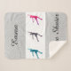 Patinage artistique pour fille Sherpa Blanket Personnalisé avec son nom. Flamme de parties scintillant argentée scintille avec 3 patineurs à silhouettes de couleur différente au centre. Ajoutez simplement le nom de votre patineur artistique !