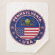Badge de Pennsylvanie avec drapeau de Pennsylvanie et drapeau des États-Unis couleurs, forme arrondie. Emblème de Pennsylvanie. Sceau de Pennsylvanie. Collection USA Etats.