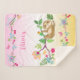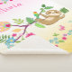 C'est une illustration exclusive originale, faite à la main. Ce design est composé d'un arrière - plan rose et jaune doux avec de nombreuses fleurs roses joyeuses et des fleurs bleues. Au milieu, il y a un très mignon bébé paresseux accroché sous une branche avec des feuilles tropicaux. Il y a aussi un joli oiseau et un papillon rose. Vous pouvez ajouter le nom de l'enfant sur la couverture