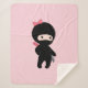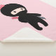 La mignonne fille de dessin animé ninja est habillée tout en noir mais pour un arc rose sur son masque de tête. Le katana d’épée japonaise traditionnel peut être vu attaché sur son épaule, sa poignée est également rose.