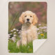 Chiot de golden retriever dans un pré de cardamine des prés. Il est un Goldie si mignon, j'a eu beaucoup d'amusement prendre des photos de lui. Les chiens d'arrêt d'or sont les chiens très futés et loyaux. Cette grande couverture de sherpa est une idée de cadeau pour des amants de chien et d'animal familier. Une photo chiot-eyed de chienchien prise par Katho Menden. http://www.zazzle.com/kathom_photo -